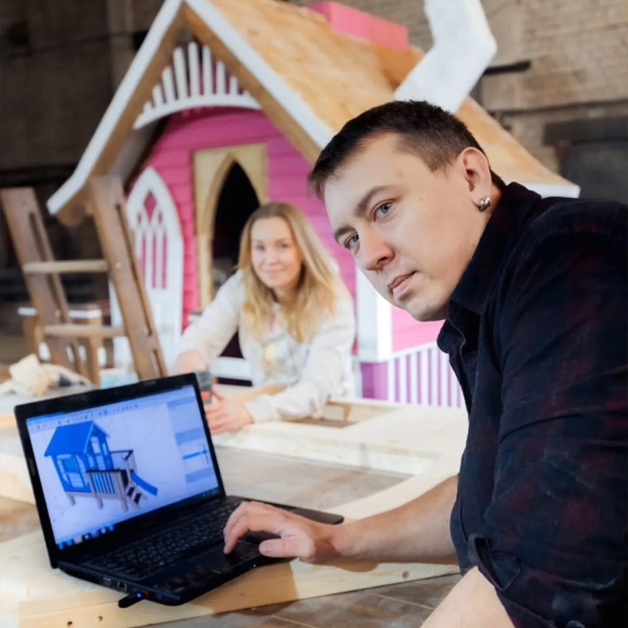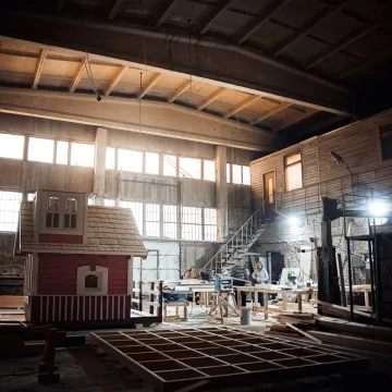 Строим домик вашей мечты. Большая часть работ проходит в нашем цехе, но вы можете следить за процессом в социальных сетях и по фотоотчетам. Домик полностью собирается на нашем производстве, а затем разбирается на крупные составные части для транспортировки, если это необходимо. В конце мы привозим и устанавливаем ваш сказочный домик.